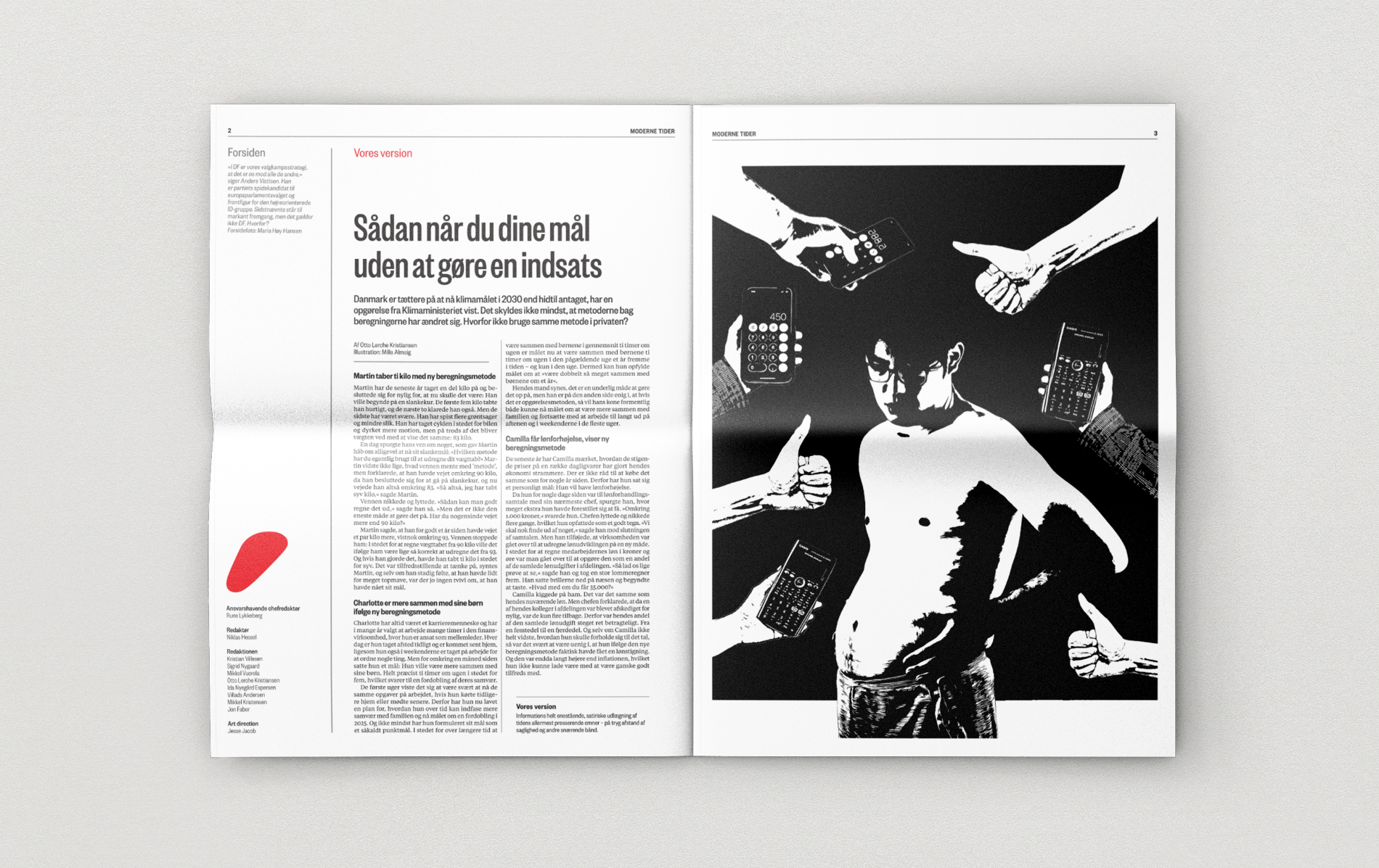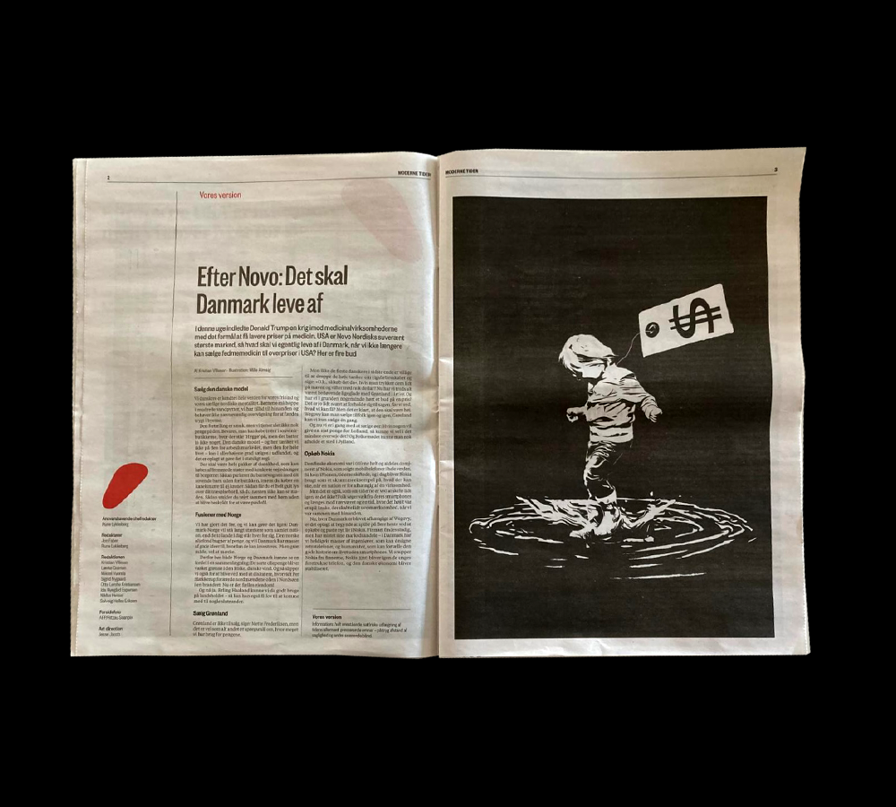 Illustrations for the daily newspaper Information / "Vores version" is a satirical interpretation of the most pressing issues of our time – safely distanced from factuality and other constricting ties. These illustrations are based on a defined graphic style, intended to convey the given article. The framework includes black and white graphics, based on photographs.
